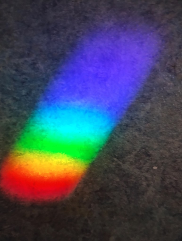 It is easy to prove that white light can be broken down into many colours. Each colour has a specific wavelength and frequency. Let’s say that each colour represents a dimension and we notice that there is a melding of colours between each dimension. There is no distinct line between the colours. Each colour is a separate energy field.